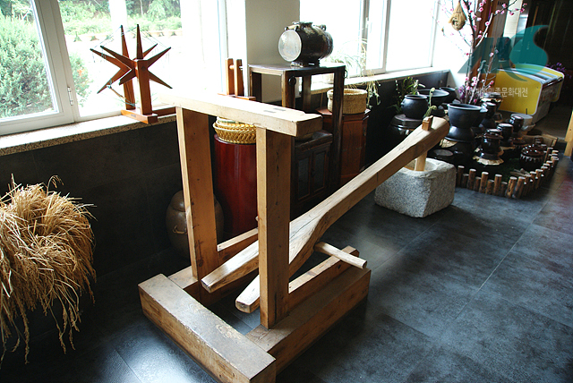 길림성 지역 한인들이 발로 밟아 곡식을 찧거나 가루를 내는 방아.