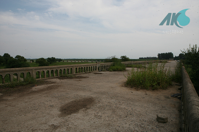 길림성(吉林省) 연변조선족자치주(延邊朝鮮族自治州) 영안향(寧安鄕) 솔만자촌(甩灣子村)에 있는 국경 다리.