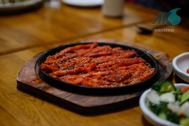 동북3성 지역 한인들이 더덕을 얇게 두들겨 펴서 고추장 양념을 발라 구워 먹는 음식.