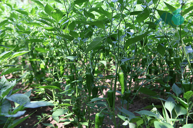 예전에는 고추가 잘 되었으나, 개방 이후 특히 10여 년 전부터 잘 되지 않는 편이다. 그 원인을 품종에 문제가 있는 것으로 보고 있다. 고추는 2월에 밑거름을 주고 비료를 뿌린 다음에 3월 상순에 파종한다. 거름은 재·돼지똥·오줌 등을 사용한다. 밭매기는 두벌~세벌 정도 실시하나, 자주 할수록 좋다는 점에서, 비교적 손이 많이 간다고 볼 수 있다. 여러 번 맬 경우에는, 두벌은 깨끗하게 매고, 나머지는 대충 맨다. 수확 시기는 7월 하순부터 8월 하순에 이른다. 고추의 종자는 북방에서 재배하는 것은 대체로 큰 편이고(15~20㎝), 사천 지방의 남방 것은 작은 편(5~7㎝)이지만 오히려 더 맵다.