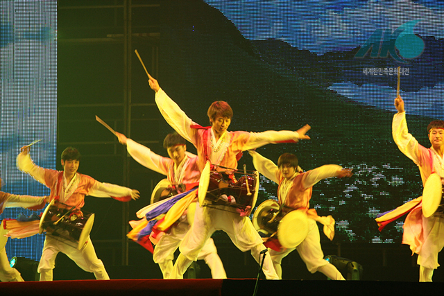 한반도에서 전파된 전통적인 「농악무」에서 파생된 민간 예술.
