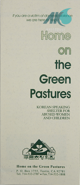 푸른초장의 집은 1993년 7월 12명의 한인 여성들이 설립한 비영리 기독교 단체이다. 가정 폭력 피해 여성과 그 자녀들에게 쉼터를 제공해 왔다.