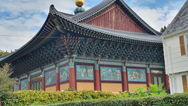 한마음선원 뉴욕지원은 한국 전통 사찰 양식으로 조성되었다. 2004년 6월 대웅전 불사 공사를 시작한 후 2007년 3월 상량식을 거쳐 2015년 준공되었다. 대웅전은 357㎡ 규모로 한국 전통 방식으로 건립되어 미국 사회에 한국 건축의 특성을 알리는 웅장하고 아름다운 건물이다. 대법당은 정면 5칸, 측면 4칸의 다포양식(多包樣式) 건물로 외부 기둥 위와 고주 기둥 위, 천장 중앙에 각각 공포를 쓰는 3중 공포 양식으로 설계되었다. 지하에는 992㎡ 규모의 문화공간이 현대식으로 조성되어 있어 공연장과 도서관 등으로 사용되고 있다. 승려 해봉이 원장을 맡고 있다.