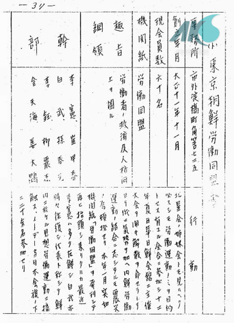 | 원어 항목명 | 東京朝鮮労働同盟会 |