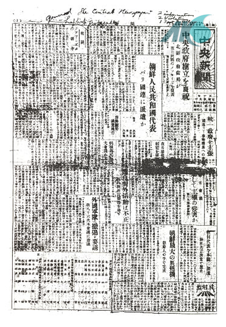 1948년 재일본조선인연맹 히로시마현 아사지부 가베분회의 산하 조직인 중앙신문사가 간행한 일본어 신문.