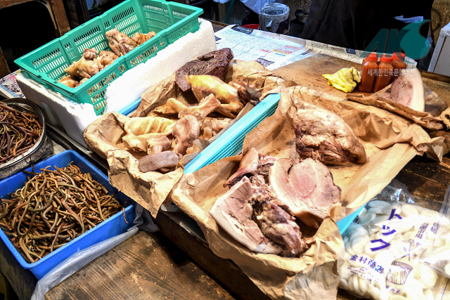 1933년에 발행된 『아사히클럽』의 기사에 따르면, 이카이노[猪飼野][일본 오사카부(大阪府) 오사카시(大阪市) 이쿠노구(生野區)에 있던 옛 동네의 지명] 조선 시장에는 다른 지역에서는 구하기 어려운 ‘그들의 애호식품’을 구하러 온 조선인들이 1만 명에 가까웠다고 한다. 여기서 ‘애호식품’이란 돼지머리를 비롯하여, 소 내장, 가오리 등과 같은 음식이었다. 재일 한인에게도 돼지머리는 무속 의례에서 빠져서는 안 될 중요한 제물이었기 때문이다.