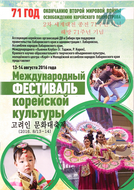 2005년부터 하바롭스크주 정부, 하바롭스크주 민족총회, 하바롭스크주 문화학술교육창조연합, 대한민국 대전시의 국제 단체 ‘휴먼클럽’, 한민족청년문화센터 ‘고려’ 그리고 하바롭스크주 청년총회 등의 지원 하에 매년 시행되고 있는 행사이다. 2016년 기준으로 11년째 행사가 진행 중이며, 한인뿐만 아니라 러시아에 거주하는 다양한 민족들이 참석한다. 주최자는 극동 및 시베리아 한인조직연합이다. 2015년 제2차 세계 대전 종전 70주년과 대한민국 해방 70주년을 기념하여 8월 14~17일까지 행사가 개최되었다. 2016년 8월 13~14일[토, 일요일] 극동 및 시베리아 한인조직연합은 제2차 세계 대전 종전 71주년 및 소련군에 의한 한반도 해방 기념식을 맞이하여 한국문화국제페스티발을 개최하였다.
