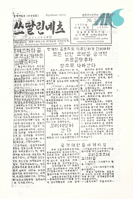 1933년 러시아 연해주 나제진스크 지역 엠테에스 정치부에서 간행된 한글 신문.