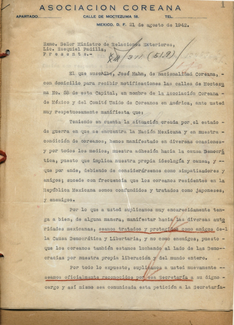일제가 태평양전쟁을 일으키자 한종원은 1941년 12월 20일 멕시코시티에서 발간되는 세 종류의 일간지에 대한민국임시정부의 대일 선전과 멕시코 한인의 입장 및 독립운동과 관련한 기사를 게재하였다. 1942년 1월 초순 『노베다드(Novedad)』 신문에 「재묵한인은 진 묵국의 은혜를 갚자」라는 한종원의 글이 게재되어, 멕시코 국민들의 동정을 많이 얻었다. 1942년 7월 17일 재미한족연합위원회 집행부에서는 한종원에게 멕시코 정부와 교섭할 수 있는 위임장을 발급하였다. 1942년 10월 한종원은 멕시코 주재 중국 공사와 면담을 하였으며, 멕시코 국무경과 외교부장을 방문하여 한인들의 안전 보장에 관해 논의하였다. 1918년부터 1940년까지 의무금, 1929년부터 1940년까지 인구세, 1940~1941년 광복군 후원금, 1942년 독립금을 납부하였다.