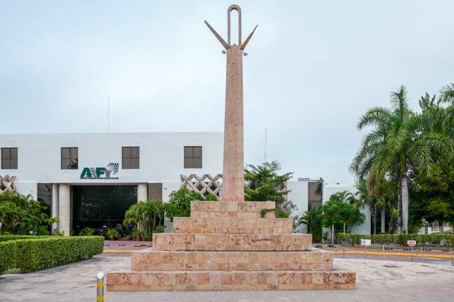 멕시코한인이민100주년기념탑은 한인 이민자들이 도착했던 프로그레소항에서 메리다 시내로 들어오는 도로 입구에 서 있다.