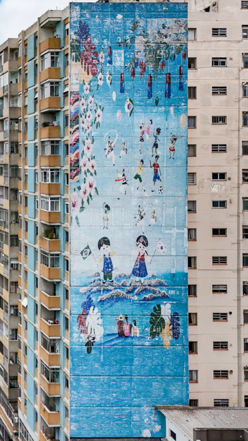 2021년 브라질 상파울루주 상파울루시 봉헤치루 한인타운 건물 외벽에 그려진 벽화.