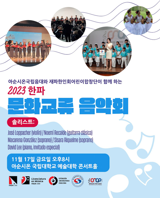 ANGEL합창단은 1979년 3월 13명의 청소년을 주축으로 결성하여 1978년 제1회 연주회를 하였다. 단원은 30여 명이다. ANGEL합창단은 1990년 7월 마지막 연주회 후 활동을 제3국으로 옮겼다. 양명순 전통무용단은 주파라과이 대한민국 대사관 주최 행사와 한국인의 날 행사 등에서 공연하였다. 1986년에는 TV 방송국 카날(CANAL) 13의 한국 문화 소개 프로에 출연하여 전통무용을 선보였다. 양명순 전통무용단은 1997년까지 활동 후 제3국으로 활동 무대를 옮겼다.
