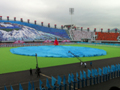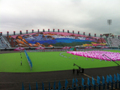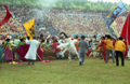 연변조선족자치주 창립 35주년 축하 행사로서 안도현 신둔 사람들의 줄다리기 모습이다.