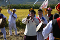 연변 TV 방송국에 출연하여 농악 놀이를 하는 모습이다.