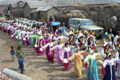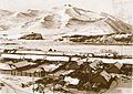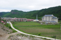 안도현 명월진 석문산촌이다. 사진의 오른쪽 굴뚝 옆 기와 올린 건물이 광영원이고, 붉은 색 지붕 건물이 방직공장이 있었던 곳이다.