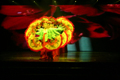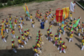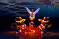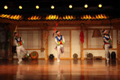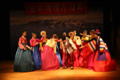 진달래 광장에 위치한 연길 국제 전시 예술 센터에서 개최된 연변 가무단 조선족 부채춤 공연 모습이다.