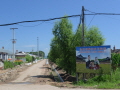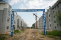 가목사시 탕원현에 위치한 금성촌이다. 금성촌의 일부 단독 주택을 허물고 오른쪽 파란색 지붕의 4층 아파트를 신축하고 있다.