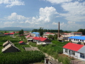 도로를 기준으로 마을을 구획하여 주택들이 질서정연하게 자리잡고 있다. 정중앙에 있는 파란색 지붕 건물이 탕원현탕왕조선족향인민정부이다.
