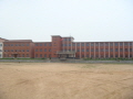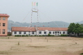 붉은 색 벽돌이 있는 4층 건물이 신빈만족자치현 조선족 중학교이다.