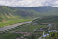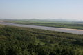 도문시의 두만강 조각 공원 정상에서 바라 본 두만강 모습이다. 두만강을 기준으로 왼편이 북한, 오른편이 도문시이다.