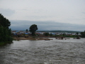 향수촌 다리에서 바라 본 강서촌 모습이다. 강의 왼편에 마을이 조성되어 있다.