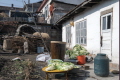 목단강시 양명구 철령진에 위치한 사도촌 가정에서 김장을 위하여 김치를 절이는 모습이다.