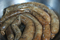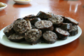 조선족들이 가정에서 만들어 먹는 순대이다. 옥수수와 찹쌀이 섞여 있어 찰진 맛이 있다.