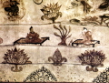 집안시에 위치한 무용총 주실 우벽 천장 벽화 일부이다.