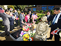 2013년 7월 30일에 열린 소녀상 제막식에서 위안부 피해자 김복동 할머니가 소녀상을 어루만지고 있다.