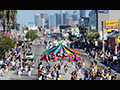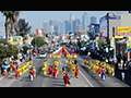 2017년제44회 로스앤젤레스 한인축제 '코리안 퍼레이드'의 선두에 선 김동석 사물놀이팀의 모습이다.
