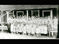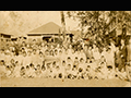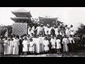 1918년 미국 하와이 호놀룰루에 이승만이 설립한 기독교계 민족 학교 한인기독학원의 칼리히 캠퍼스의 1930년 학생들과 이승만(오른쪽 끝)의 모습이다.