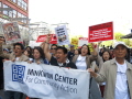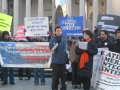 미국 뉴욕주 예비선거를 독려하는 가두 캠패인을 벌이고 있는 모습이다.
