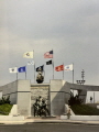 한전 참전용사 기념벽의 모습이다. 기념벽에는 참전용사의 이름과 한국전쟁 명예 훈장 수여자 에드워드 C. 벤폴드의 모습이 새겨져 있다.