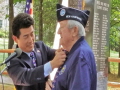 뉴햄프셔 한인회장이 한국전 참전용사 보은행사에 참가한 참전용사의 기념을 증정하고 있는 모습이다.
