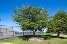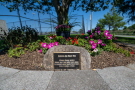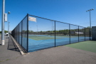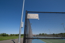 앤드류 김 메모리얼 테니스코트의 전경이다. 철조망의 상단에 '앤드류 김 추모 테니스장' 이라는 표지물이 부착되어 있다.